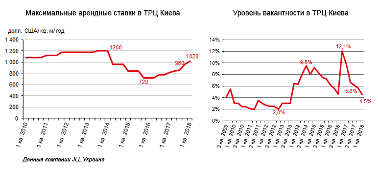 По мнению аналитиков рынка, главными причинами нынешнего повышения стоимости аренды стали рост спроса и снижение вакантности. «При этом сохраняется устойчивый спрос со стороны ритейлеров. За I квартал 2018 года доля свободных площадей на рынке качественных торговых центров Киева сократилась до 4,5%, что является наименьшим значением с конца 2013 года», — говорит Екатерина Весна.