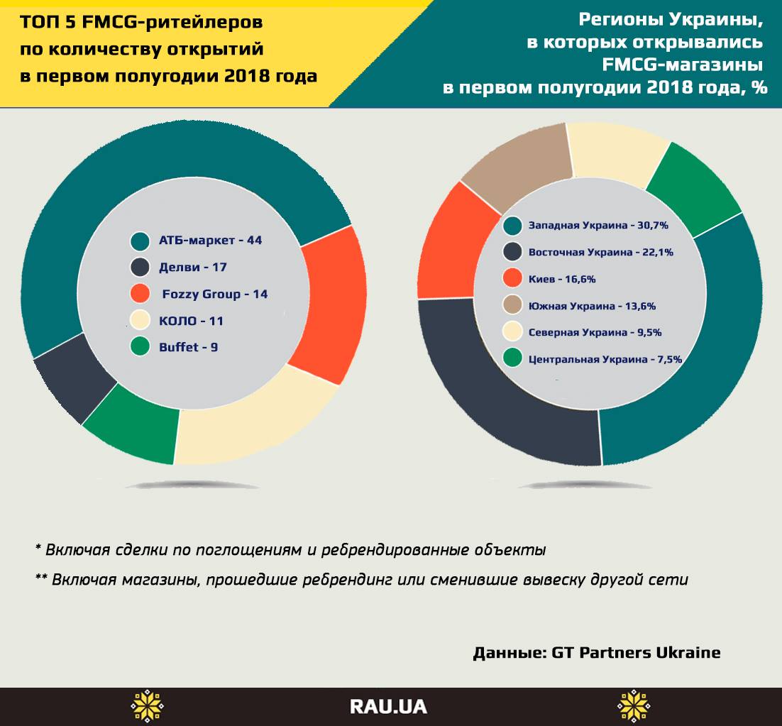 Исследовательская компания GT Partners Ukraine представила свое очередное исследование: лидеры FMCG-рынка Украины по количеству магазинов по итогам первого полугодия 2018 года. Крупнейшей торговой сетью Украины остается АТБ: за шесть месяцев этого года днепровская корпорация нарастила количество своих торговых точек на 44 объекта. Другие ритейлеры по темпам развития все дальше отстают: Fozzy Group «приросла» всего на пять магазинов - пишет RAU.