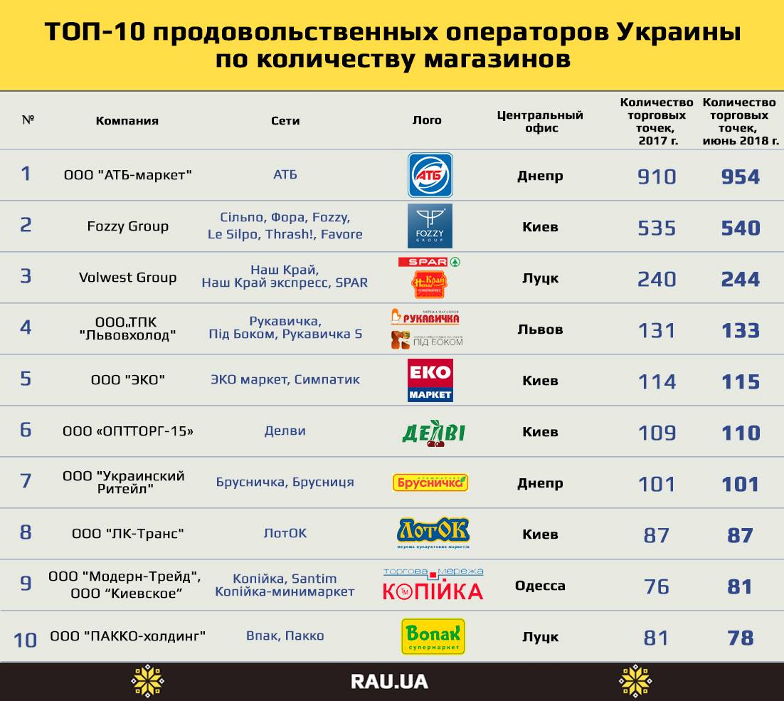 Топ-10 продуктовых сетей Украины по количеству магазинов