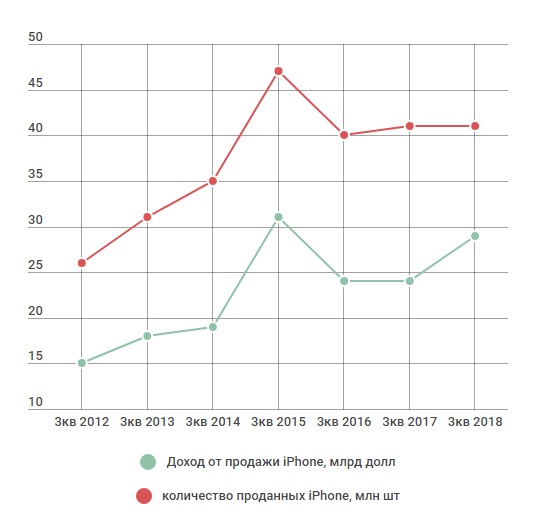 А аналитики тогда спорили. Одни говорили, что без нового продукта яблочная компания практически исчерпала возможности роста, а другие - что продажи будут и дальше идти вверх, в том числе и благодаря развитию сервисного направления. В последнем они не ошибались. Сервисы действительно выросли с $5 млрд (Q3 2015) до $9,5 млрд (Q3 2018).