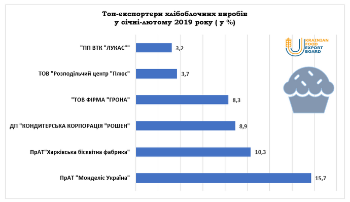 Лидером среди экспортеров хлебобулочных изделий стала ЗАО "Монделис Украина" (15,7%).