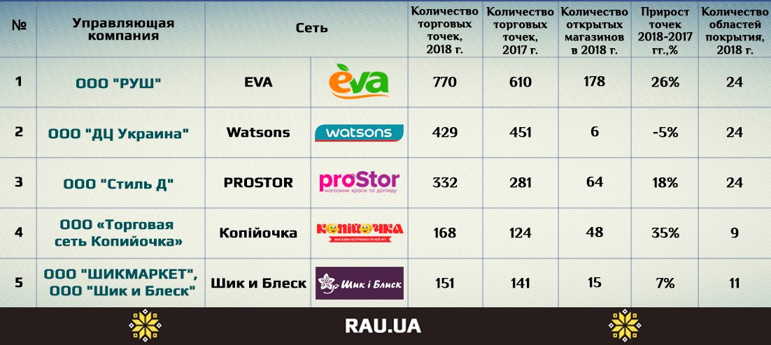 Полностью топ-5 украинских сетей, продающих товары для красоты и здоровья, выглядит так: