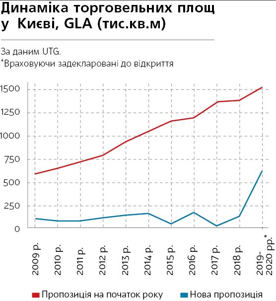 Если планы реализуются и все упомянутые объекты будут запущены, это приведет к первичному насыщению рынка торговой недвижимости. Так, коэффициент обеспеченности торговыми площадями киевлянина вплотную приблизится к аналогичному европейского коэффициента. По подсчетам UTG, потенциал торговых площадей в Киеве превышает 2 млн кв. м, тогда как текущее предложение составляет чуть более 1,5 млн кв. м. То есть потенциал неохваченного спроса в столице оценивается в 564 300 кв. м.