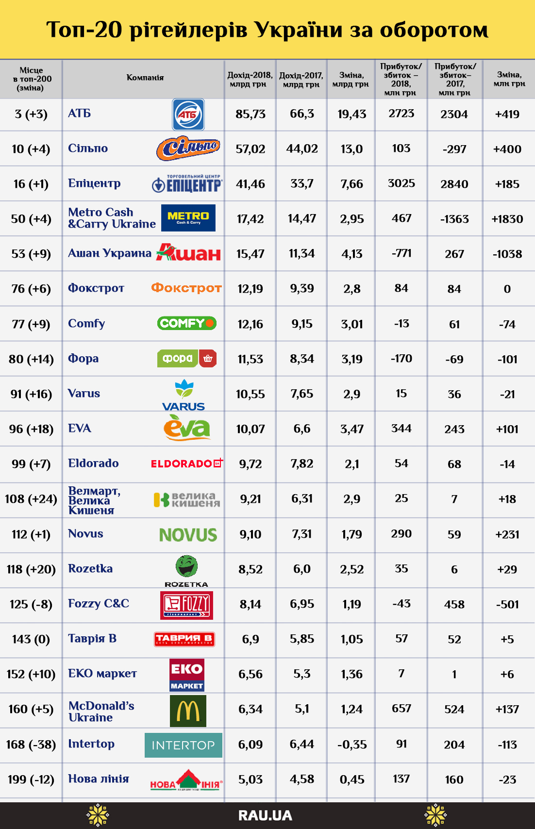 Топ-200: самые доходные, прибыльные и убыточные ритейлеры Украины