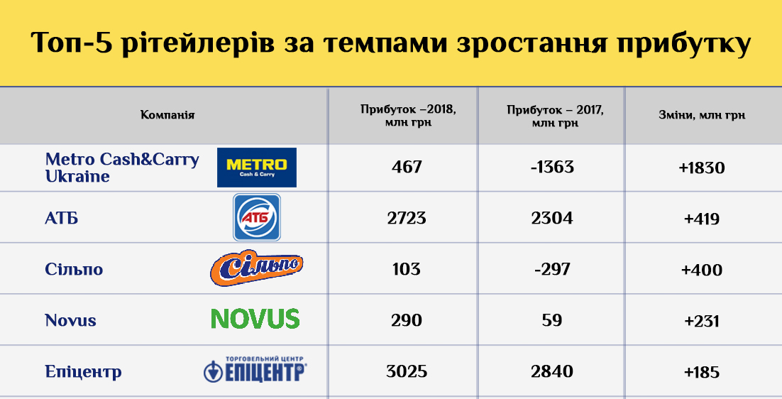Но, как уже не раз отмечалось, высокий валовый доход отнюдь не гарантирует высокую чистую прибыль. К примеру, Эпицентр продолжает опережать по этому показателю АТБ, хотя за год сеть дискаунтеров заметно сократила отставание. После нескольких лет убытков впервые прибыль показало украинское подразделение немецкой группы Metro. Если, согласно отчетности, 2017-й оно закончило с убытком более 1,3 млрд грн, то в прошлом – показало чистую прибыль в 467 млн грн. Вероятнее всего, это связано с окончанием сроков переоценки убытков и активов, потерянных в оккупированном Россией Крыму и отдельных районах Донецкой и Луганской областей.