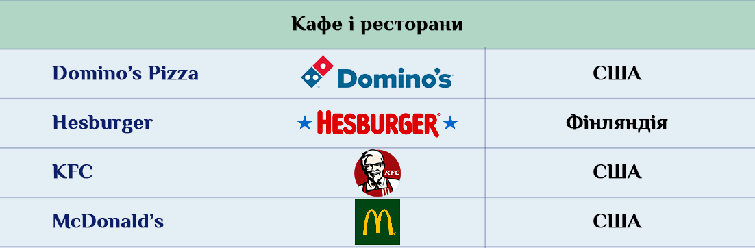 Три из четырех иностранных сетей общепита в Украине – это американские бренды Domino’s Pizza, KFC и McDonald’s. Все они представляют собой рестораны быстрого обслуживания, но у каждого своя модель развития. Так, KFC предпочитает открывать новые заведения по франшизе, McDonald’s действует самостоятельно, а Domino’s Pizza – продает франшизу для развития за пределами Киева.