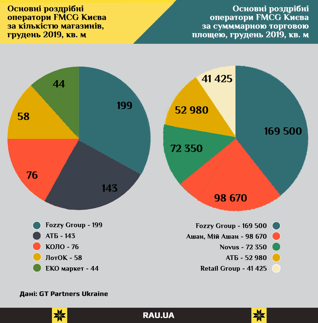 Ассоциация ритейлеров Украины презентует очередное исследование, посвященное отечественному рынку FMCG, как одному из немногих, который продолжает более-менее нормально функционировать в условиях карантина. На основе информации, предоставленной RAU компанией GT Partners Ukraine, мы проанализировали крупнейшие сети в столице и регионах, предлагающих все, что нужно для поддержания нормальной жизни: продукты, напитки, предметы гигиены и товары для дома. Каждую сеть оценивали по количеству магазинов и суммарной площади. Все данные актуальны на декабрь 2019 года.