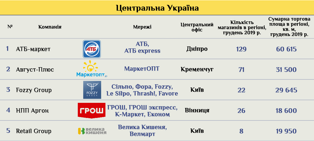 В пятерку региональных сетей входит еще один местных игрок — ООО «НПП Аргон» из Винницы, которое управляет сетями ГРОШ, ГРОШ экспресс, К-Маркет, Эконом. Эти магазины работают в форматах супермаркет, магазин у дома, гипермаркет, минимаркет. Конкурируя с дискаунтером АТБ, у которого здесь в четыре раза больше торговых точек и втрое — торговых площадей. Но вместе два региональных игрока вполне могут тягаться по масштабам бизнеса с лидером.