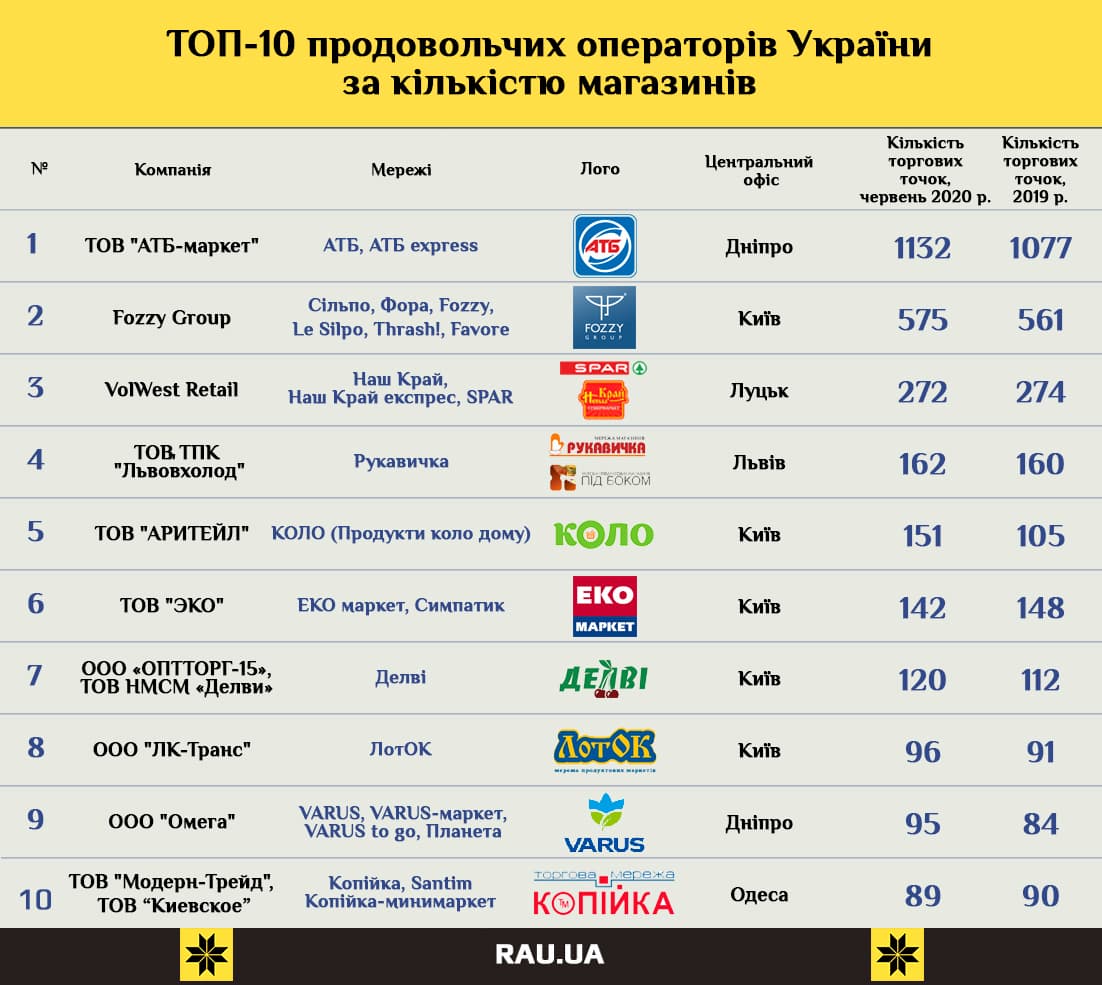 Топ-10 украинских продуктовых сетей по количеству магазинов и темпам открытий