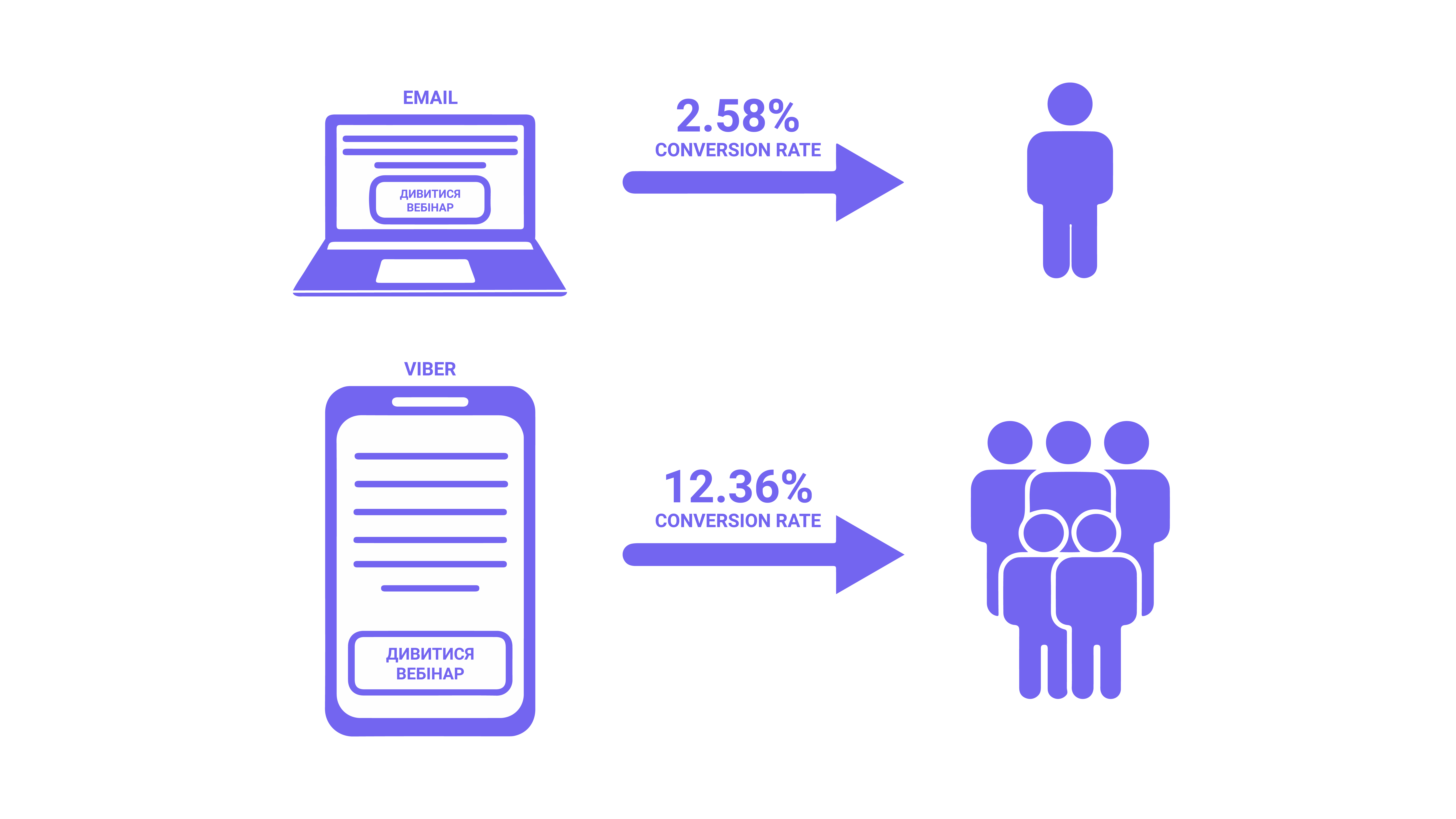 Благодаря внедрению в стратегию продвижения Viber-рассылок Укрпочте удалось увеличить конверсию участников вебинара в 5 раз.