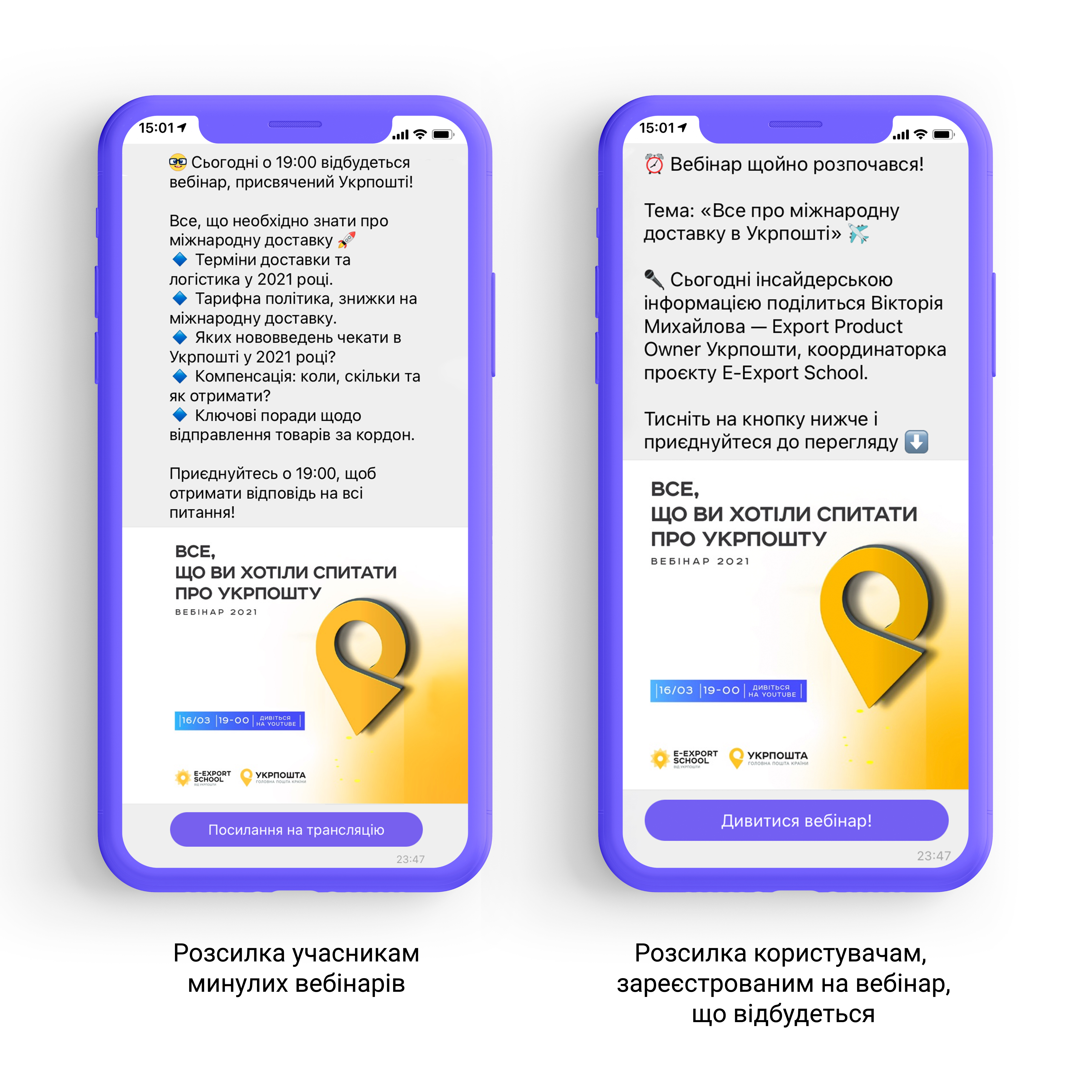 Для привлечения новой аудитории Укрпочта по большей части использовала таргетированную рекламу. Контактные данные собирали через форму на сайте проекта. Также ученикам рассылали напоминания о вебинаре с помощью email-рассылки в день мероприятия. Однако, большинство пользователей не просматривали эти письма или видели напоминание уже после проведения вебинара. Так возникла необходимость в поиске новых альтернативных каналов связи.