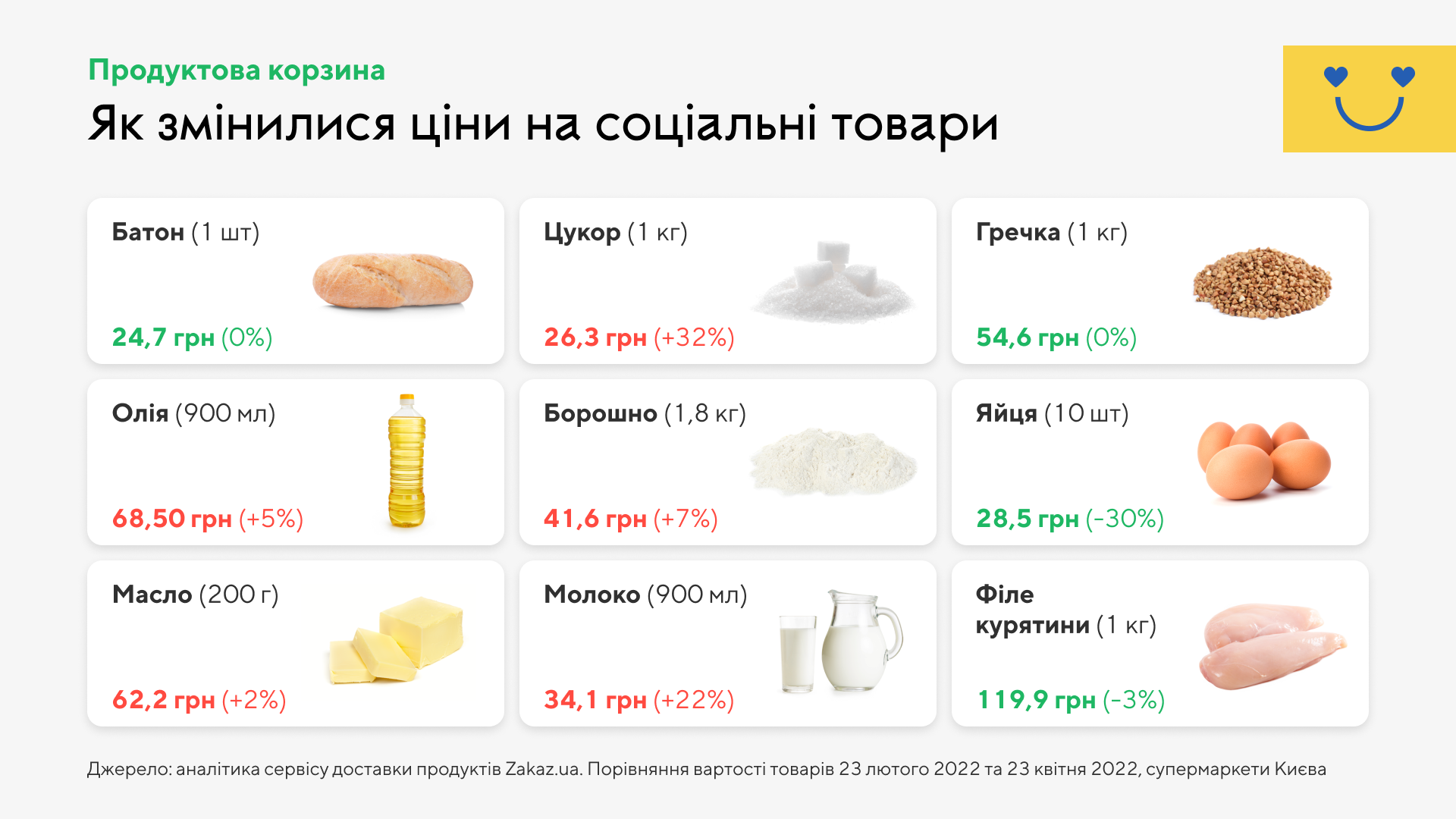 Инфографика Zakaz.ua: как изменились цены на продукты в супермаркетах Киева во время войны