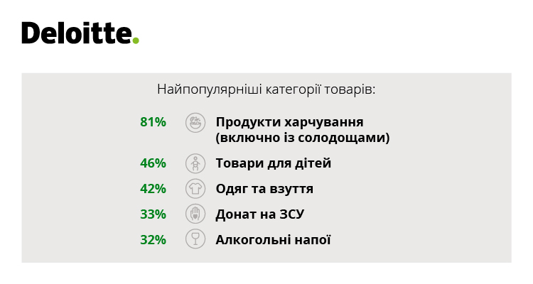 "Война существенно влияет на потребительские настроения украинцев. Наше исследование показало, что, например, развитая в мире покупка онлайн пока не находит подтверждения в Украине. Однако несгибаемость украинцев, которая прослеживается и в готовности к праздничному шопингу, вдохновляет, а также помогает ритейлерам продолжать поддерживать экономический фронт", — отметил Александр Ямпольский, директор, руководитель отраслевой группы по ритейлу и оптовой дистрибуции «Делойт» в Украине.