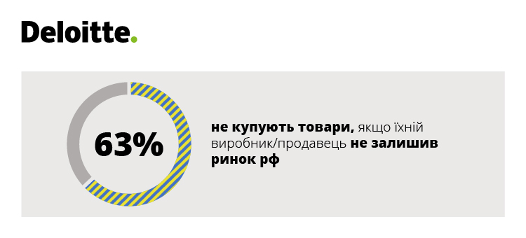 - 63% украинцев не будут покупать товары, если их изготовитель или продавец не покинул рынок РФ.