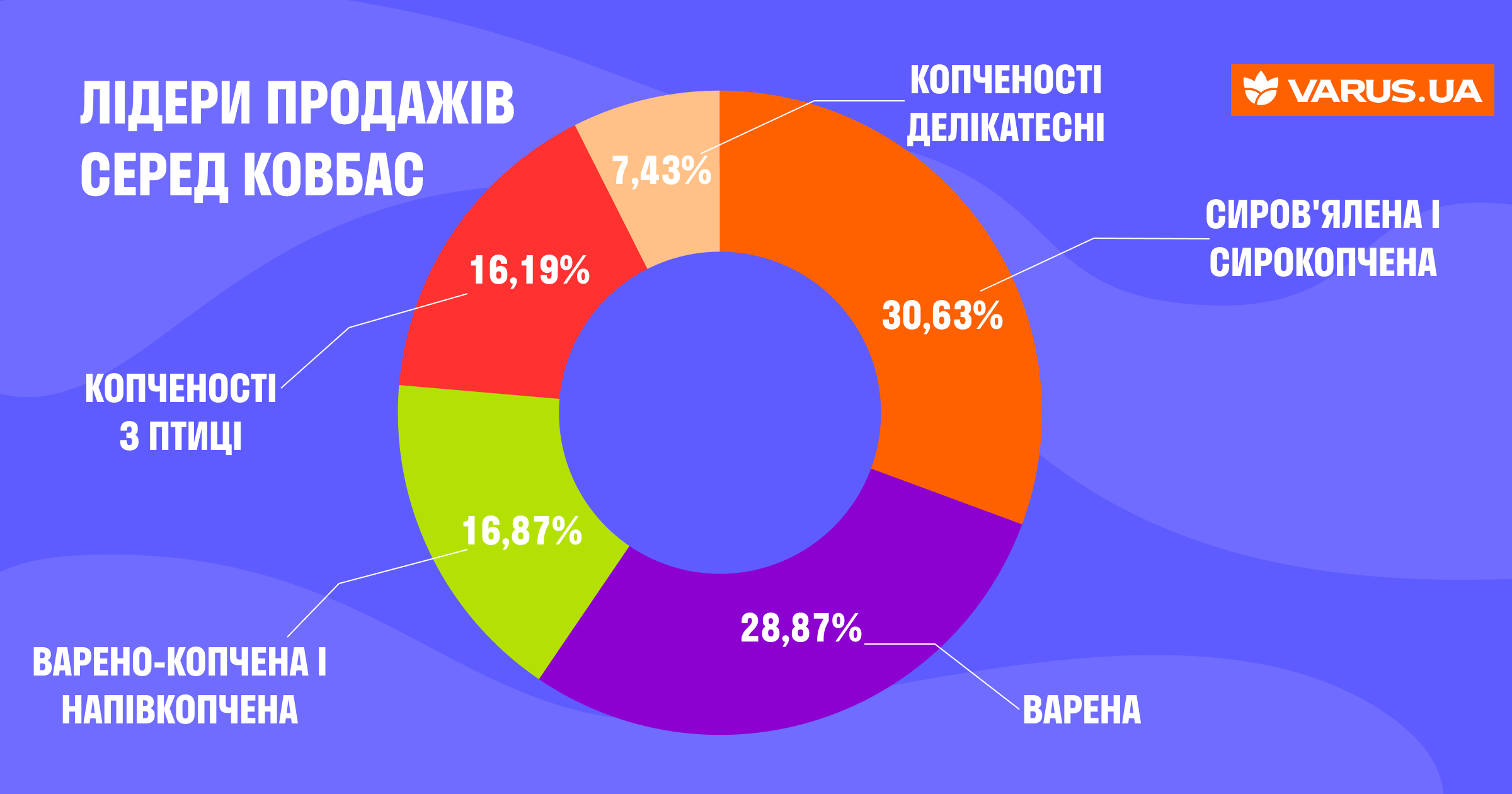 Сеть VARUS подвела итоги онлайн-продаж и представила аналитику предпочтений колбасных изделий, наиболее заказываемых клиентами VARUS.UA.
