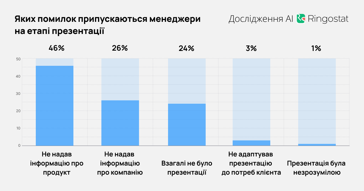 - в 3% случаев не адаптировали презентацию к потребностям клиента, просто озвучив преимущества;