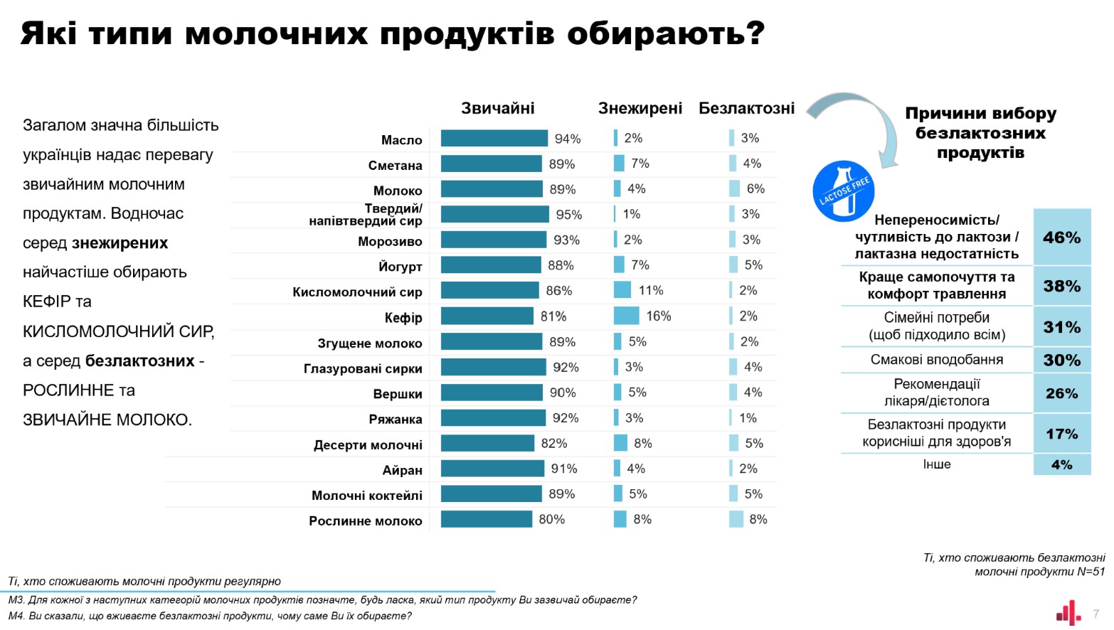 По данным исследования 4Service, до 8% украинцев регулярно выбирают безлактозные продукты, однако 38% делают это из-за ощущения более комфортного пищеварения, а 46% — из-за непереносимости лактозы. Для трети опрошенных важно, чтобы продукт подходил всем членам семьи и еще 30% ориентируются на вкусовые предпочтения.