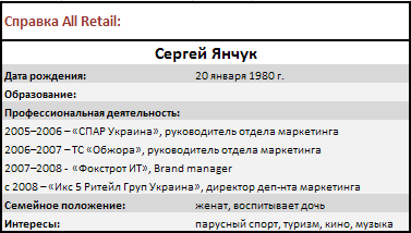 Готовясь к разговору с Сергеем Янчуком, мы стремились, чтобы беседа была интересной не только нам, но и нашему собеседнику. Мы попытались не задавать «сухих» вопросов об оборотах, площадях и бюджетах, а поговорить больше о жизни классного украинского маркетолога. Надеемся, хотя бы отчасти мы поставленной цели достигли.