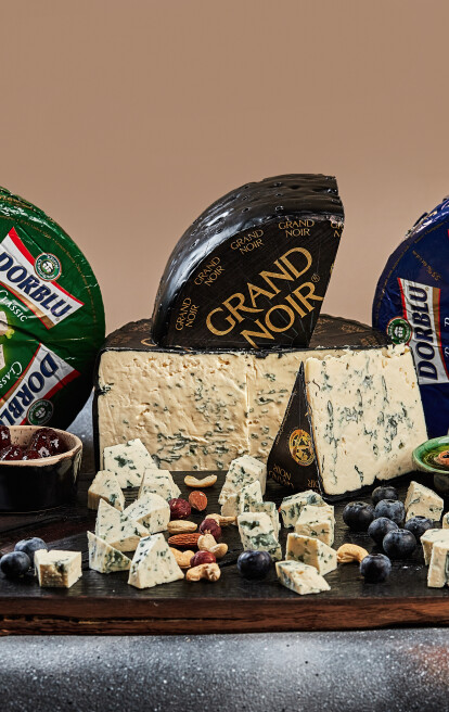 У нас есть три вкусовых категории разного уровня: Cambozola (с мягким вкусом), Montagnolo (с более выраженным вкусом), Grand Noir и Dorblu — сыры для настоящих гурманов. Кстати, Grand Noir — мой любимый сыр и официально признанный самый лучший голубой сыр в мире.