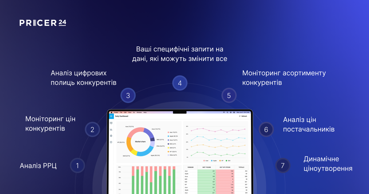 Это было о парсинге, который предлагают большинство провайдеров. Что касается другого, то очень мало игроков делают то, что Pricer24 — агрегированную аналитику всего рынка: цен, ассортимента, акций, а также динамическое ценообразование. Еще меньше делают это отменно, как мы. Поэтому с нами и работают три лучших игрока e-commerce в Украине — Розетка, Эпицентр и Comfy.