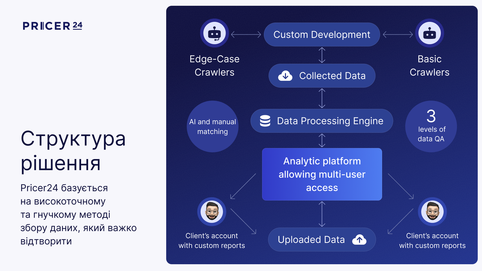 Кроме того, важен так называемый discovery rate. Поскольку современные онлайн-магазины хорошо защищены и имеют разноплановую архитектуру, шаблонным парсерам трудно найти каждый товар в каталоге, случаются ошибки. Парсеры нужно кастомизировать, и кроме Pricer24, это очень мало кто делает.