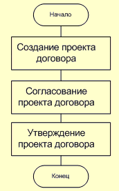 Что мы можем понять из такой схемы, не получив дополнительных комментариев и не зная, какова специфика выполнения работ? Увы, очень мало. Нам ясно только то , что некто каким-то образом узнает о начале работ и создает проект договора. Он же отдает проект кому-то на согласование.