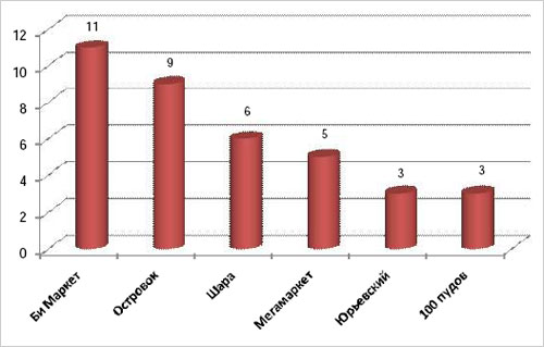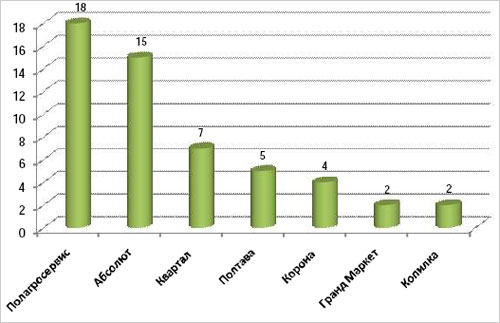 График 3. Центральная Украина: Локальные сети по количеству торговых точек*