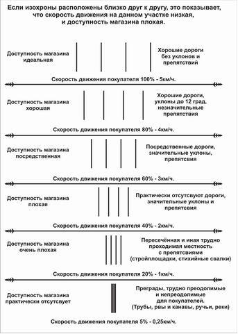 Чем дальше друг от друга находятся изохроны, тем лучше условия для посещаемости магазина покупателем: