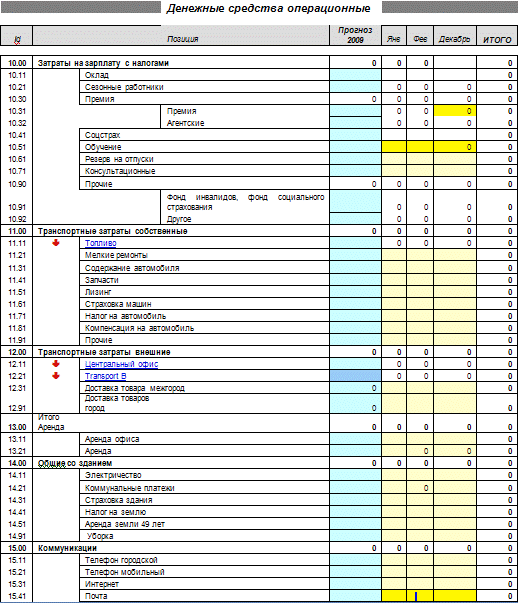 В таблицу «Операционные денежные средства» необходимо внести все операционные затраты предприятия. Ниже указаны основные статьи затрат любой розничной сети: