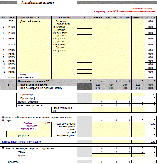 В нем указывается заработная плата, согласного штатного расписания, а также все затраты которые несет розничный магазин на оплату работы сотрудников.