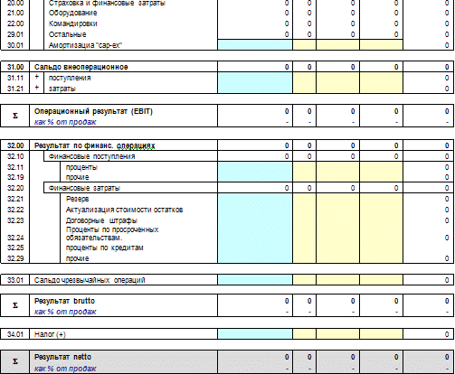 В статье «Результат netto» в каждой ячейке можно видеть результаты магазина по месяцам, что позволит понимать величину избытка и недостатка финансовых средств помесячно на протяжении всего года: