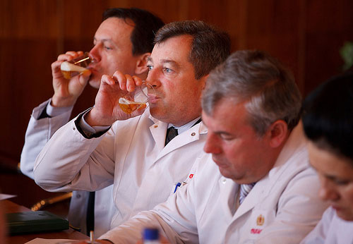Дегустации проходят дважды в неделю. Для этого собирается команда технологов, сотрудников лабораторий, начальники цехов разлива. Все они в свое время прошли специальный отбор и обучение по международным стандартам, чтобы в совершенстве овладеть навыками профессионального дегустатора. Ведь для этой работы нужны люди с очень тонкими способностями различать вкус и запах.