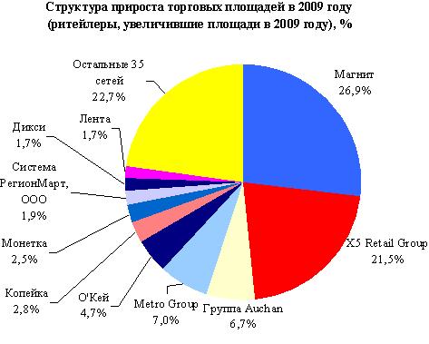 Исследование: В 2009 году торговые площади сетей FMCG России увеличились на 1 млн кв.м.