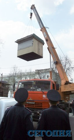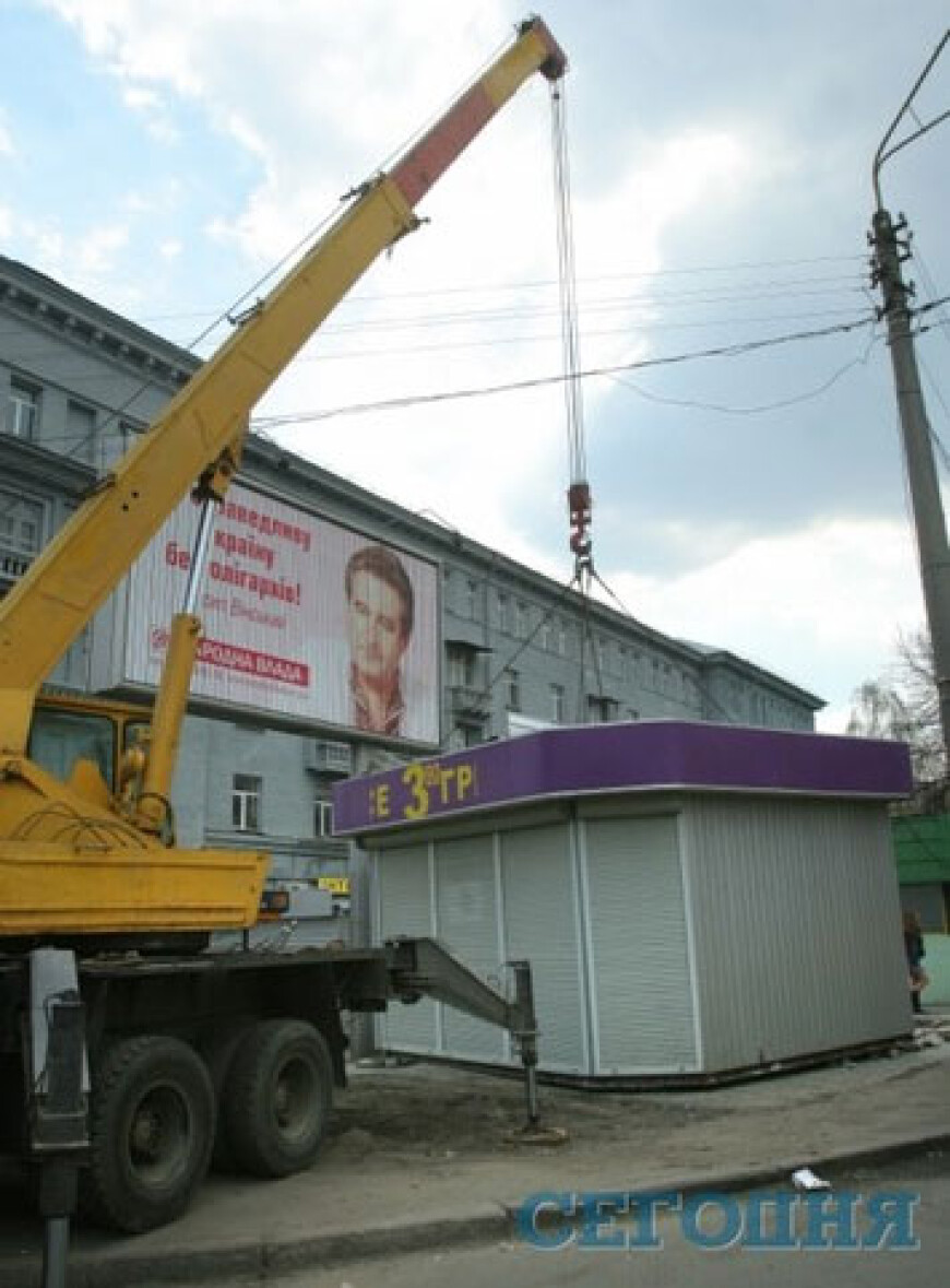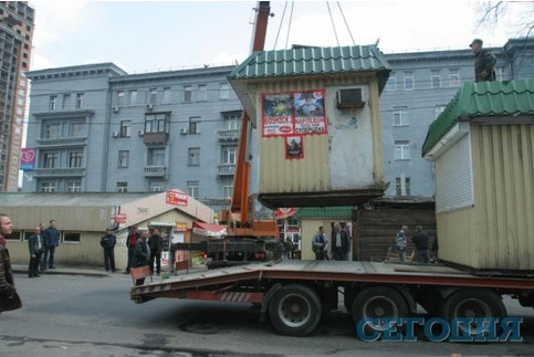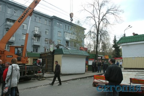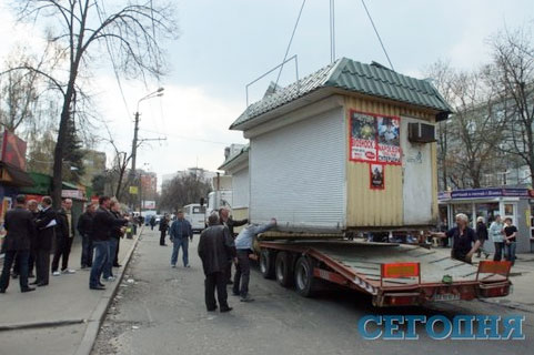 Газета "Сегодня" опубликовала фоторепортаж о сносе ларьков прямо с товаром, будь то хлеб или пиво.