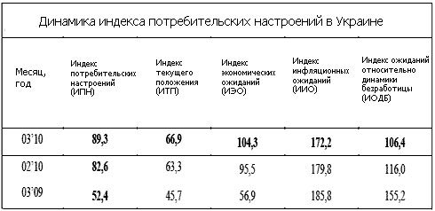 В марте 2010 года потребительские настроения украинцев значительно улучшились. Основной причиной улучшения при этом стали экономические ожидания.
