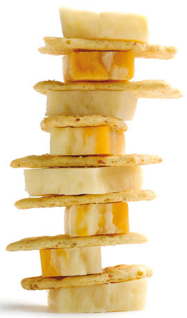На воображаемом циферблате сыр располагают от нежного к острому. На «шести часах» находится самый нейтральный сыр. Вкус нарастает по часовой стрелке, в результате самый нежный и самый острый сорта оказываются по соседству. Вот так может выглядеть сырная тарелка из доступных в наших краях сортов: свежая моцарелла — мягкий камамбер — полумягкий эдам — твердый, но не острый грюер — острый и пикантный козий шеврет — насыщенный рокфор — и под конец резкий мюнстер. Еще один вариант раскладки: по консистенции. Твердые сыры кладут с краю, чтобы удобнее было отрезать, а в центре — влажные и те, что легко крошатся (с голубой плесенью).