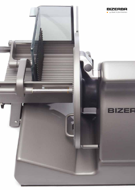 Ручная подача продуктов всегда происходит за пределами опасной зоны. Держатель остатков и защитный устройство для рук изготовлены из специального высококачественного пластика, предназначенного для пищевой промышленности. Защитная панель нарезательного ножа является абсолютно герметичной и предупреждает проникновение жидкости из мяса или продуктов, которые нарезаются, и их остатков на стенки.