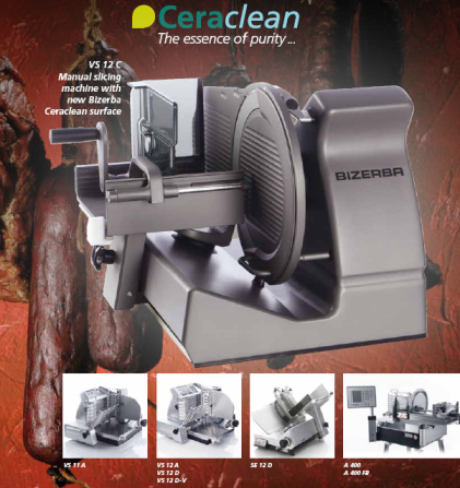В этом году компания Bizerba презентовала слайсеры с новой технологией обработки поверхности оборудования Ceraclean, состоящее из смеси синтетической смолы, керамики и политетрафлюоретила, что делает слайсеры Bizerba более крепкими, упругими и устойчивыми к коррозии.