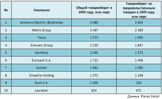 Наши западные соседи обзавелись новым исследованием крупнейших торговых операторов по показателю товарооборота в 2009 году. Предлагаем Вам ознакомиться с этим любопытным рейтингом.