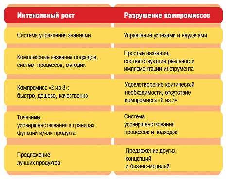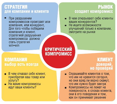 Вариант, который станет настоящим разрушением компромисса, будет виден сразу. Это будет не акция и не замена элемента системы. Разрушение критического компромисса — это создание новой системы, основанной на других принципах.Такой путь можно назвать прогрессом: вы идете первыми, и неизвестно, что впереди. Это большой риск, но и большие прибыли.