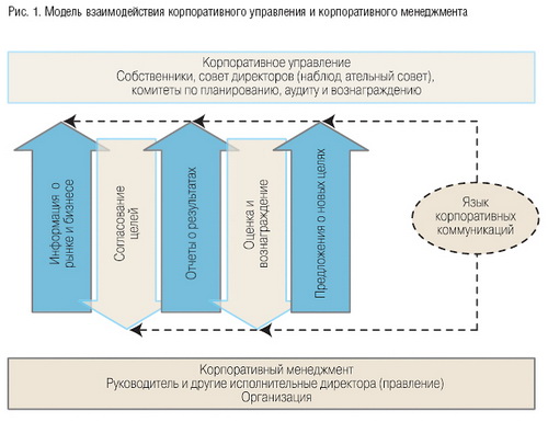 Современная модель взаимодействия корпоративного управления и корпоративного менеджмента приведена на рисунке 1.