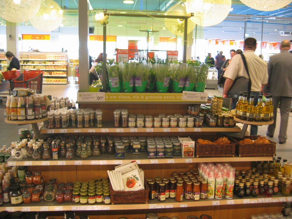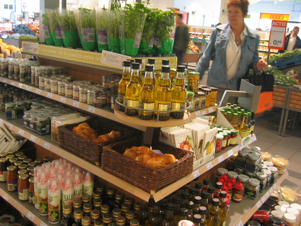 В Нидерландах в розничном бизнесе очень жесткая конкуренция. Торговые сети затягивают, они постоянно внедряют новые решения. C1000 – одна из самых инновационных сетей. Она действительно думает о покупателях и предлагает удобные и готовые решения для них. Например, на одной торцевой гондоле все продукты для салата «Цезарь», или клубника и сливки (на фото). Комбинацию решений предлагают покупателю и на островном стеллаже. Здесь специи в упаковках удачно совмещаются с био-луком в плетеных корзинах, книгами по кулинарии, свежими пряностями и зеленью – наверху, и дорогим маслом и уксусом на профессиональном оборудовании для визуального мерчандайзинга. Все вместе выглядит очень соблазнительно!
