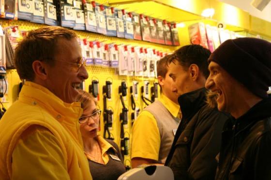 Предлагаем Вашему вниманию фотоотчет первого рабочего дня нового креативного директора сети салонов мобильной связи "Евросеть" (и по совместительству доктора Быкова) - Ивана Охлобыстина. При этом новому сотруднику помогал президент компании «Евросеть» Александр Малис.