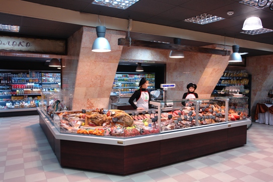 Отделка всех витрин изготовлена индивидуально для магазина SPAR Gourmet в соответствии с дизайном торгового зала.