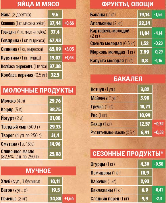 Каждую неделю меняется итоговая сумма в основной потребительской корзине. Составлен график, в котором данные последних восьми недель наглядно демонстрируют, как растут или падают наши затраты на самые необходимые продукты.