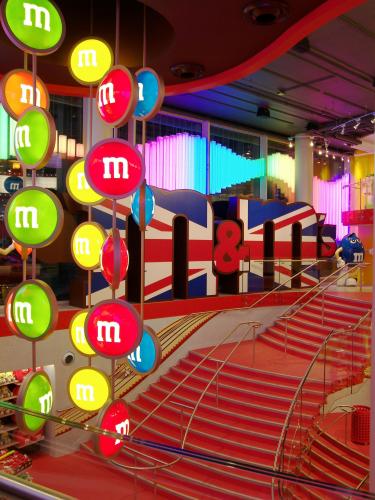 Производитель снеков Mars открыл в Лондоне первый за пределами США фирменный магазин M&M’S. Он расположился на площади Лейчестер Сквер в здании, построенном на месте бывшего Свис Центр Билдинг, на нижних этажах отеля W. Площадь объекта - 35 000 квадратных футов (3 250 кв.м.). Ассортимент включает различные виды шоколада M&M"S (в том числе ограниченные серии шоколада и продукты M&M"S, разработанные специально для Лондона), а также сувенирную продукцию, в том числе одежду, кухонные принадлежности, постельное бельё, украшения и стеклянную посуду.