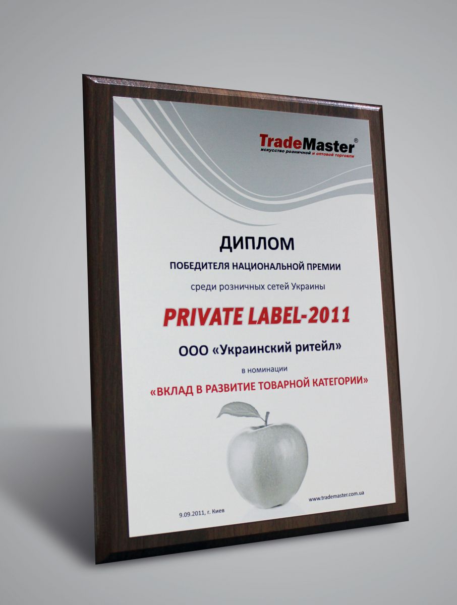 Компания «Украинский Ритейл» победила в Национальной Премии «Private Label - 2011» в номинации «Вклад в развитие товарной категории».