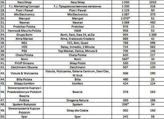 В рейтинг вошли все самые большие ритейлеры Польши, независимо от сектора их деятельности.