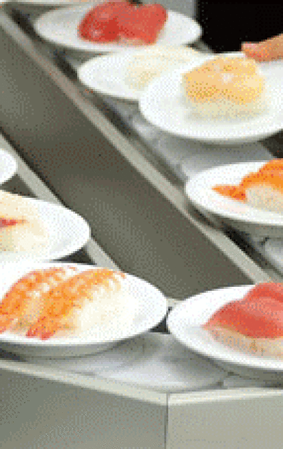 Распространение суши-баров обязано во многом концепции самообслуживания, необходимым элементом которых является конвейер, по которому движутся готовые блюда. Принцип устройства конвейера хорошо известен всем, кто получал багаж в любом крупном аэропорту. Только здесь по конвейеру движутся тарелки с разнообразными блюдами и клиент наглядно принимает решение о выборе. В соответствии со статистикой наглядность повышает общий объем заказа клиента, тем самым увеличивая прибыль ресторана. В странах СНГ такая технология только начинает развиваться. Являясь официальным представителем многих Азиатских компаний, компания "Самурай" способствует продвижению подобных инновационных решений на пространстве СНГ. Подобные рестораны имеют очень большую популярность в мире, особенно в Великобритании и странах Азии.