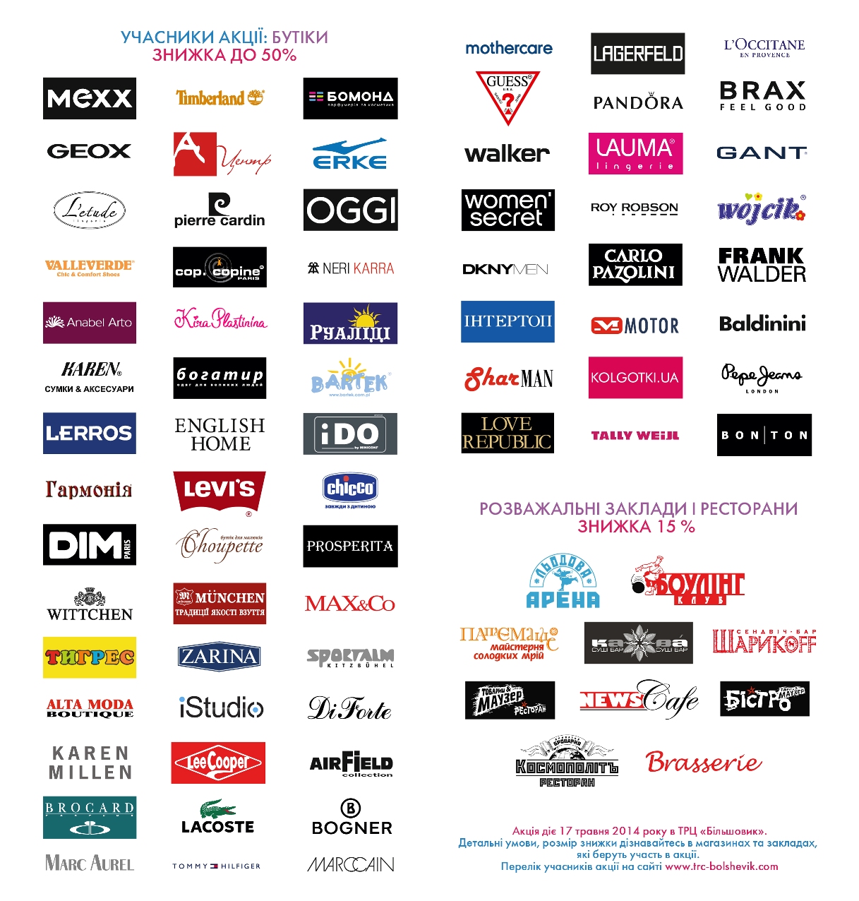 70 магазинов ТРЦ « Большевик » 17 мая предложат посетителям специальные скидки!